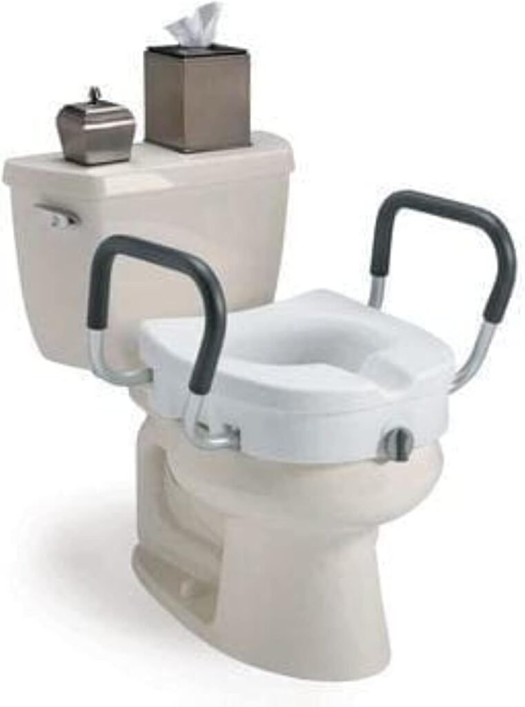 علاية مقعد حمام (مقعد مرحاض مرتفع) قابلة للإزالة مع مقابض ذراع مبطنة – دعم آمن لكبار السن وذوي الإعاقة