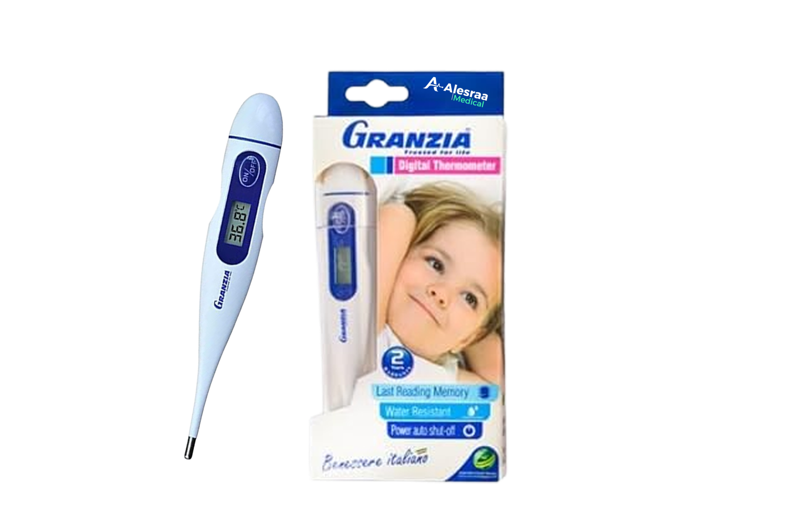 ترمومتر حرارة رقمي يوفر قياس دقيق وسريع لدرجة الحرارة خلال ثوانٍ. يتميز بتصميم مقاوم للماء لسهولة التنظيف والحفاظ على النظافة. مزود بشاشة كبيرة مع عدسة مكبرة لسهولة قراءة النتائج، بالإضافة إلى خاصية حفظ القراءات السابقة. كما يحتوي على تنبيه عند ارتفاع درجة الحرارة، مما يجعله مناسبًا للاستخدام المنزلي والطبي للكبار والأطفال.