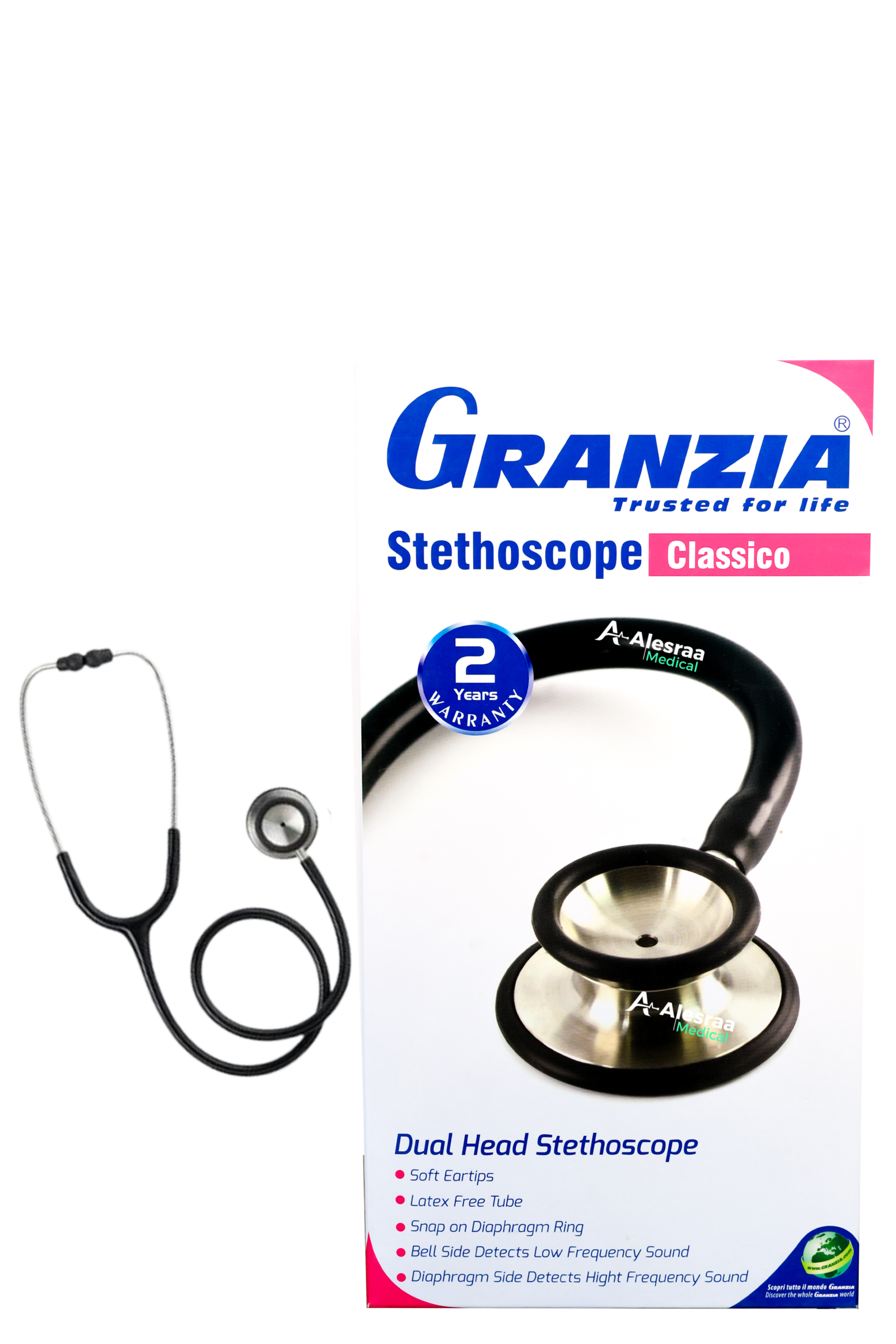 سماعة طبية كلاسيكو من Granzia – ثنائية الرأس، صوت واضح، خفيفة الوزن، ألوان متنوعة (صناعة إيطالية – ضمان سنتين)