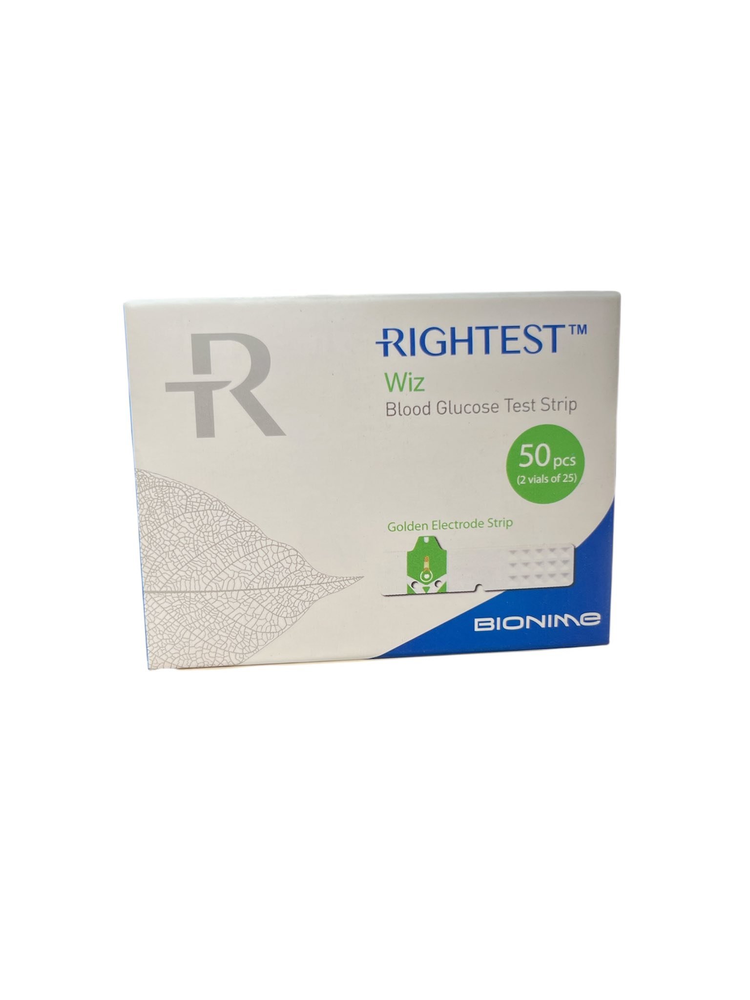 شرائط اختبار السكر في الدم من Bionime رايتست ويز Rightest Wiz – عدد 50 شريط