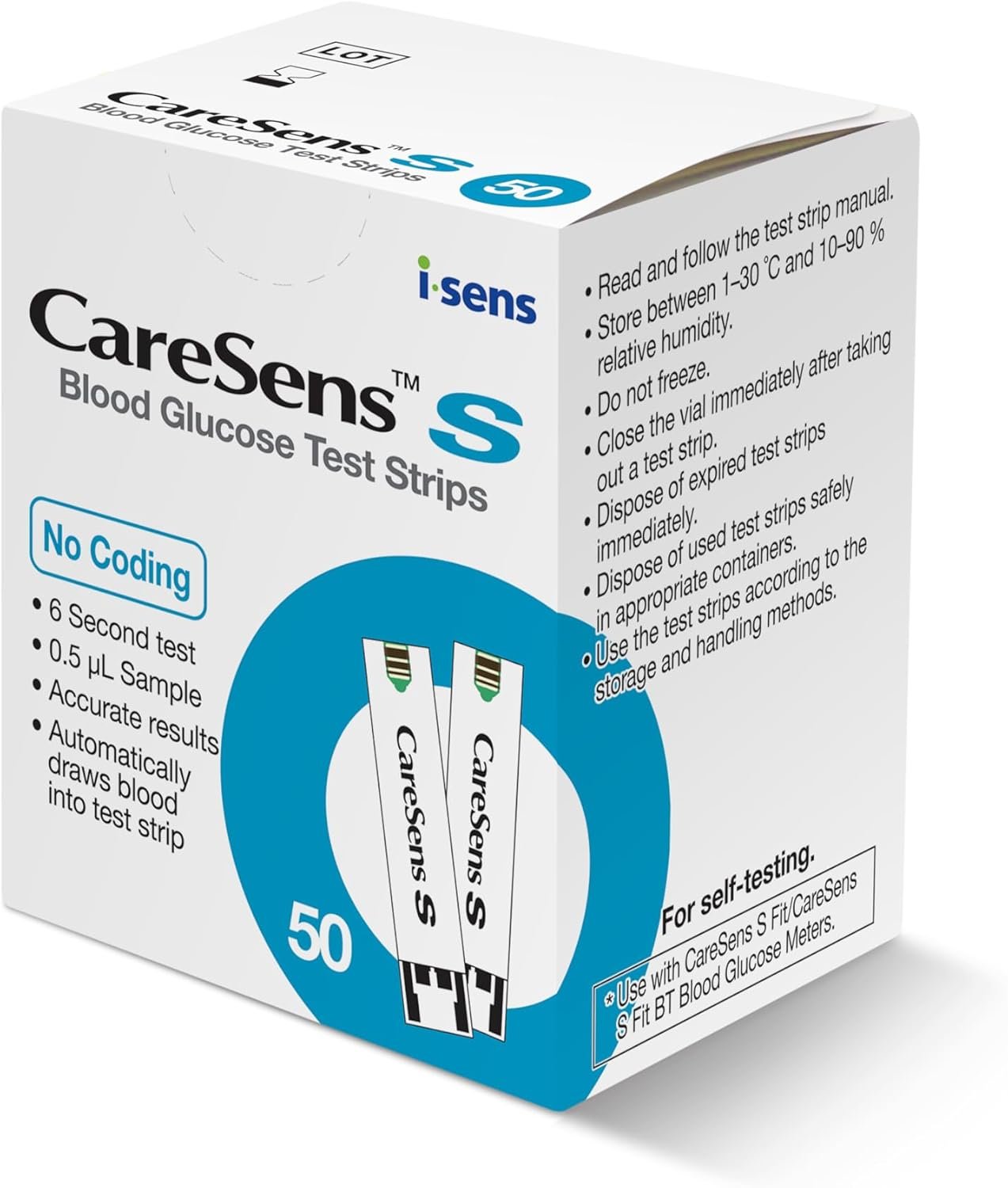 تعمل مع أجهزة قياس السكر المتوافقة من Caresense لتقديم نتائج موثوقة خلال ثوانٍ.