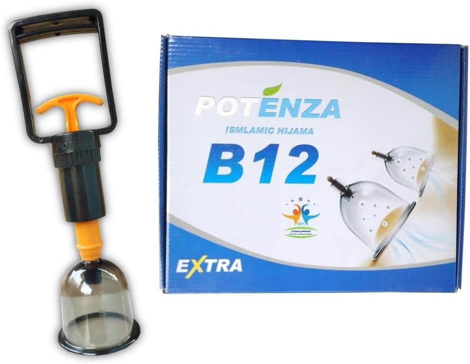 طقم حجامة علاجية (اسلامية) مع مقبض ضخ من 12 قطعة بوتنزا