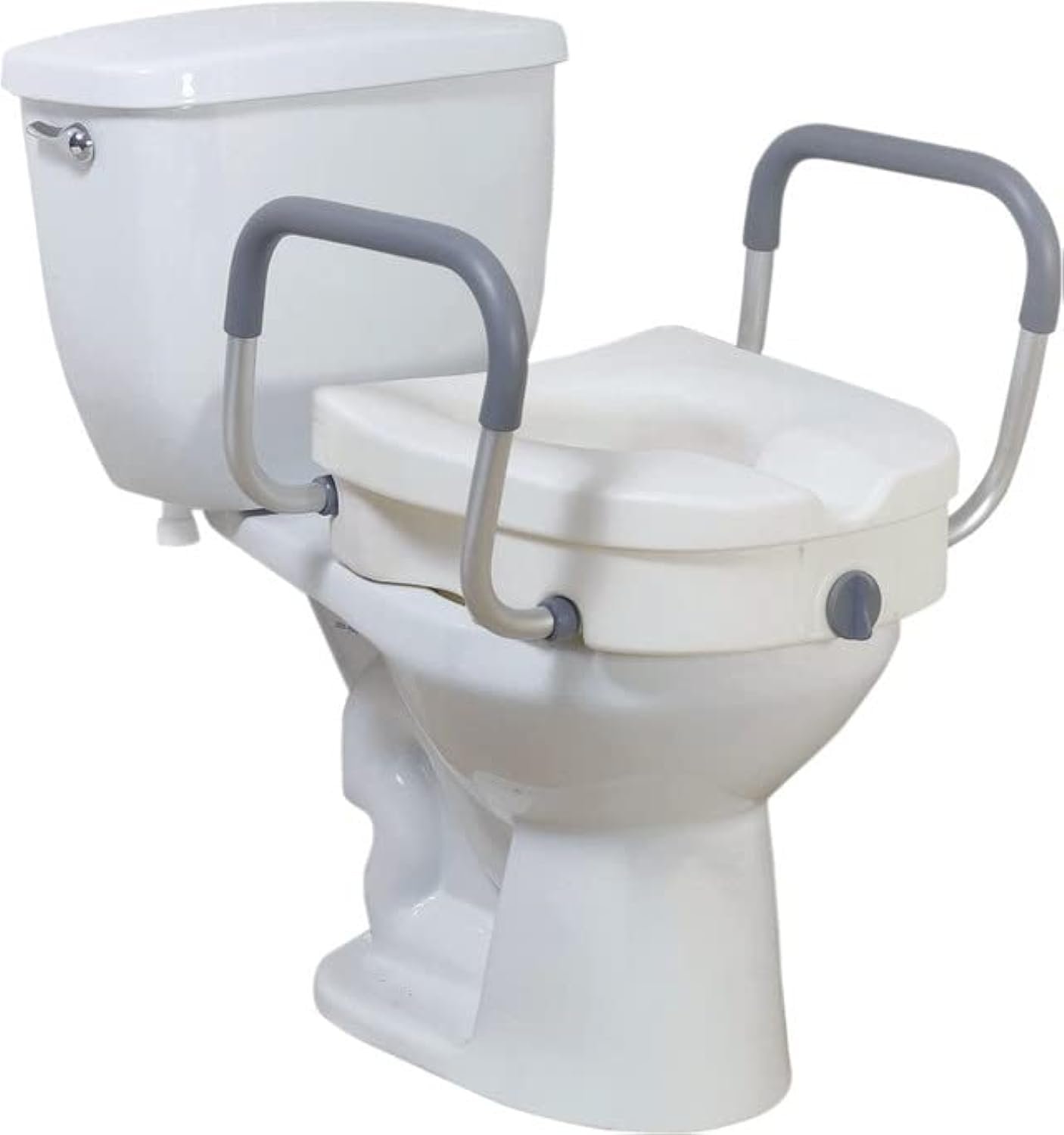 علاية مقعد حمام (مقعد مرحاض مرتفع) قابلة للإزالة مع مقابض ذراع مبطنة – دعم آمن لكبار السن وذوي الإعاقة