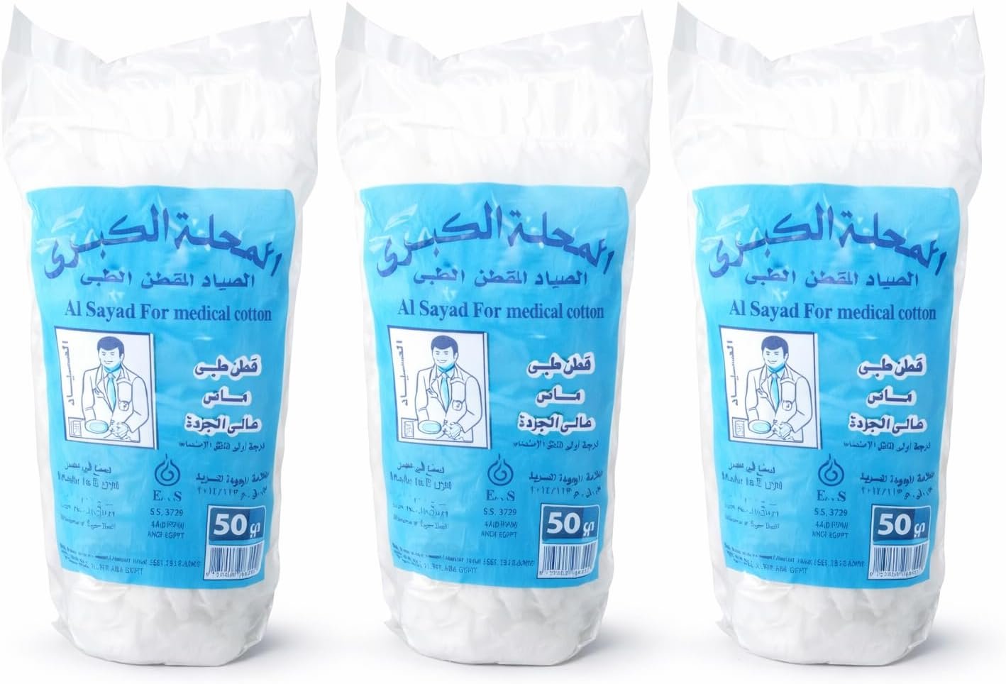 قطن طبي ماص للماء للاستخدام الطبي والإسعافات الأولية عبوة 3 قطع بإجمالي وزن 150 جرام
