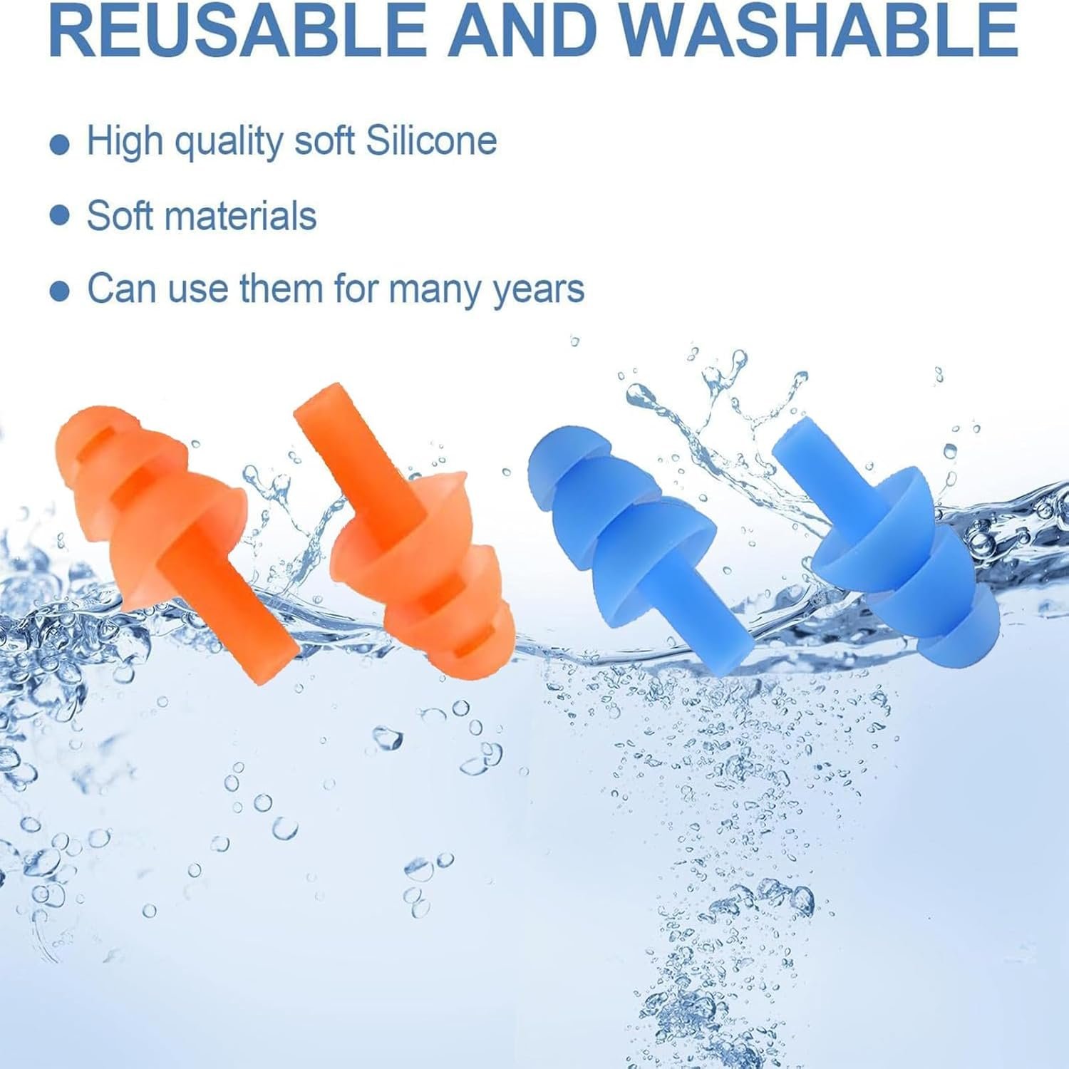 5 زوج من سدادات الأذن السيليكون – للسباحة والنوم وتقليل الضوضاء، قابلة لإعادة الاستخدام، حماية فعّالة للأذن