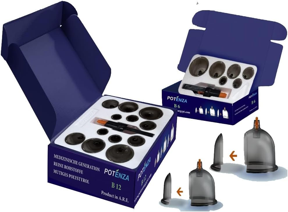 تشمل 12 كأس حجامة لتغطية مناطق الجسم المختلفة