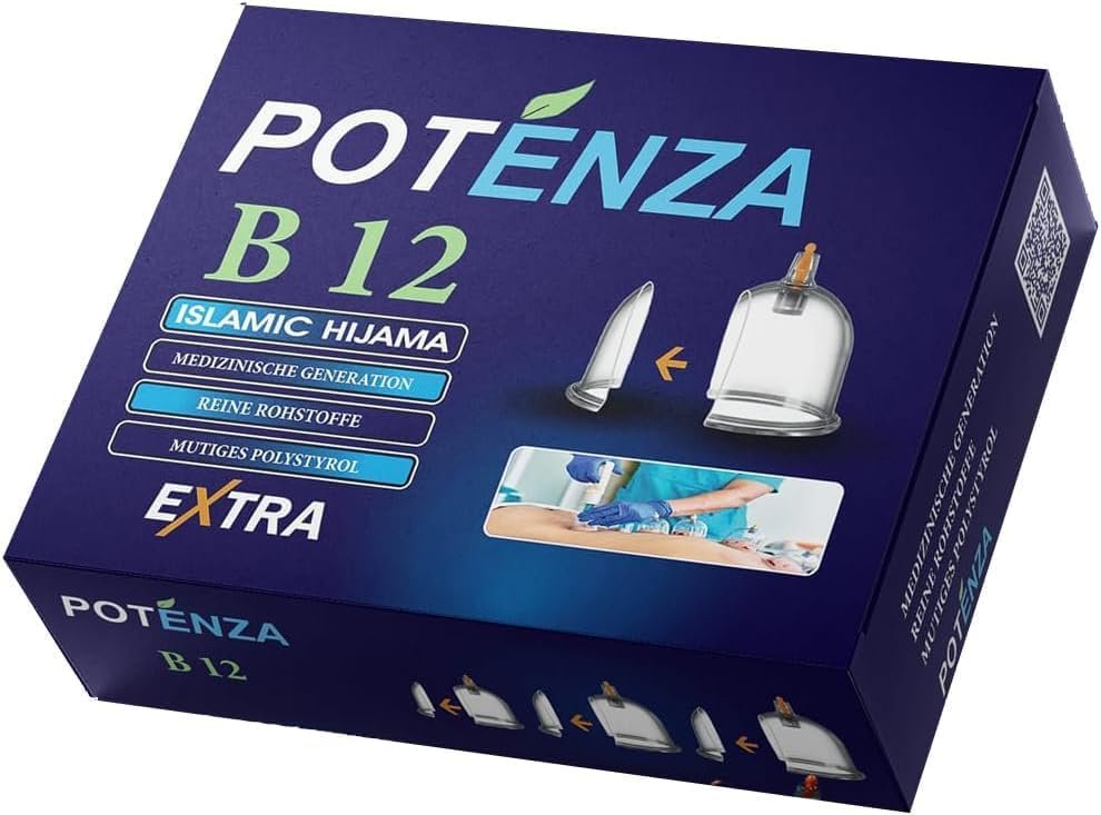 B12 مجموعة الحجامة الإسلامية الطبية – أدوات حجامة مهنية مع صندوق أزرق، 12 كأس